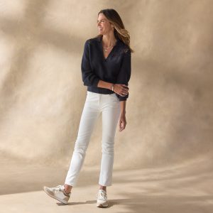 Subtle details make this allover rib sweater so special. with a hand-crocheted yoke and picot trim at V-neckline. Recycled wool/merino wool/cotton/nylon. Hand wash. Imported. Exclusive. Sizes XS (0?C2). S (4?C6). M (8?C10). L (12?C14). XL (16?C18). XXL (20?C22). Approx. 22l.