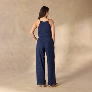 Sporty and feminine. our cotton gauze. eyelet pants are loose and flowing. with wide-leg silhouette. scalloped hem. side seam pockets and back patch pockets. Fully lined. with button closure zip fly and tie at waistline. Machine wash. Imported. Exclusive. Sizes 0?C14. 27.5 inseam