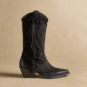 Exuberant fringe gives movement and flair to these boots. Two pull-on tabs and inside half zipper. Suede. Italy. Whole sizes 36 (US 6). 37 (US 7). 38 (US 8). 39 (US 8.5). 40 (US 9). 41 (US 10).