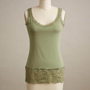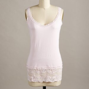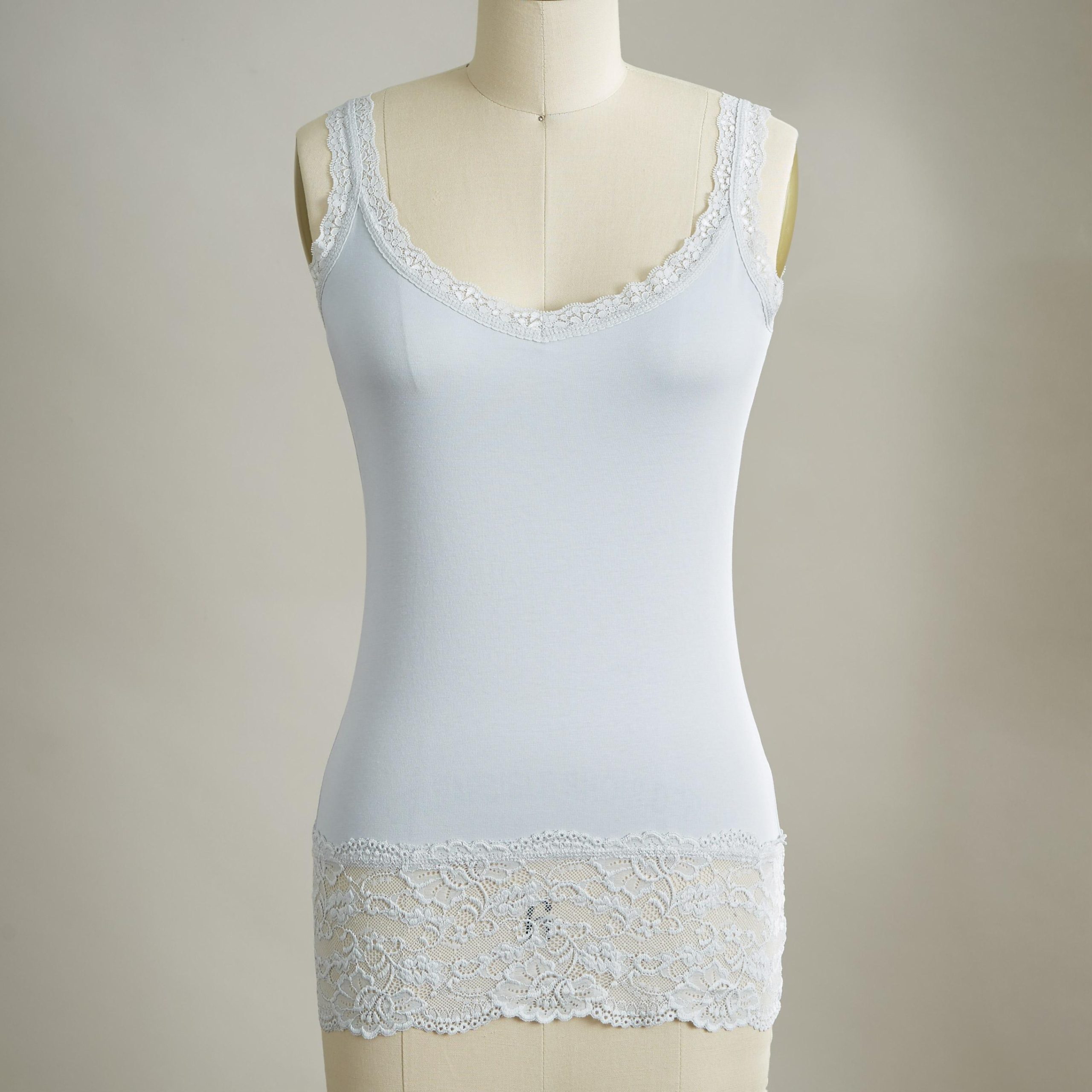 Our essential. lace-trimmed tank is slim-fitting for plenty of versatility. Pair with a sweater or tee for a glimpse of flirty lace. Cotton/spandex. Machine wash. Portugal. Exclusive. Sizes XXS (00). XS (0?C2). S (4?C6). M (8?C10). L (12?C14). XL (16?C18). Approx. 23.5l.