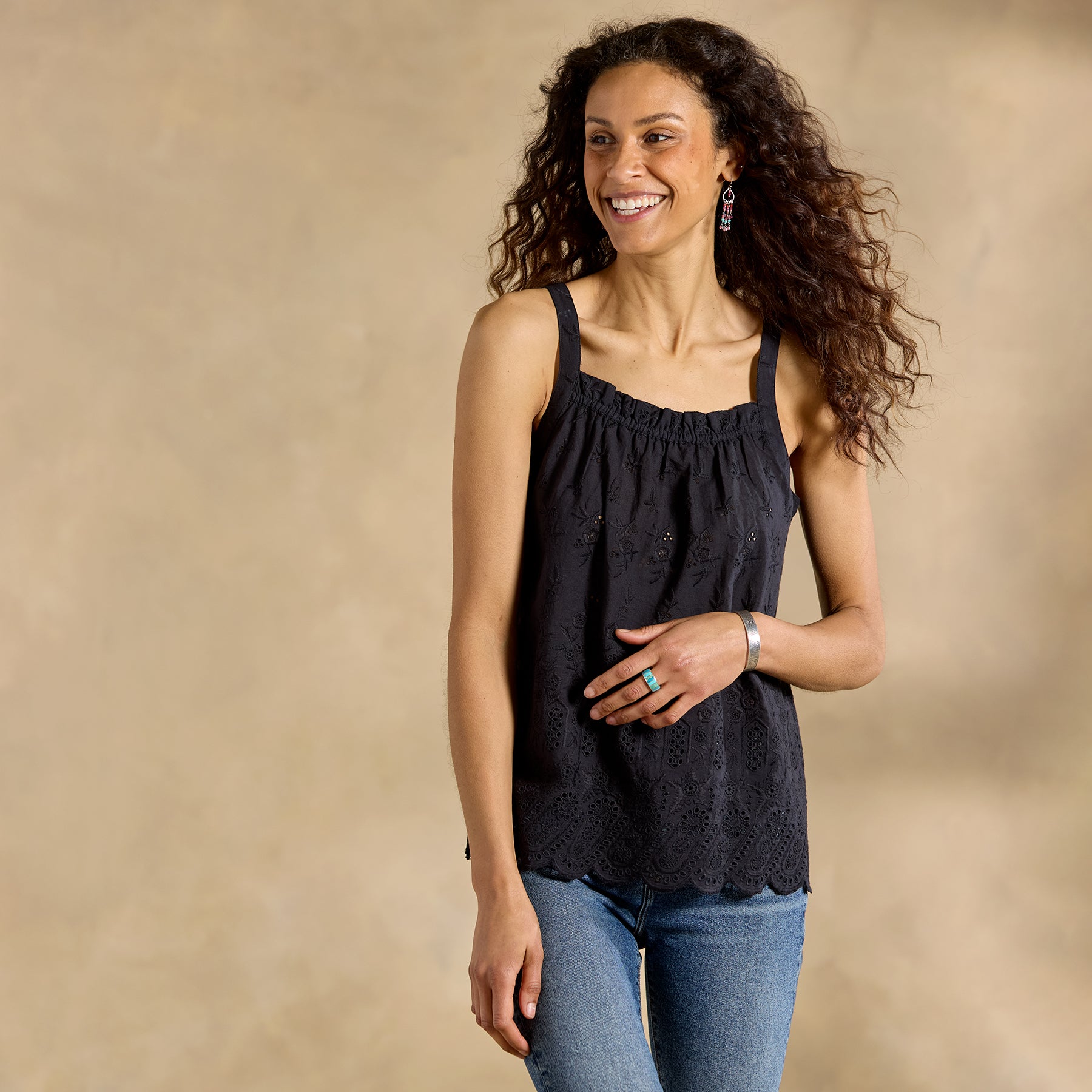 All-over eyelet makes Elsinore flirty and feminine in any weather??she’s equally pretty peeking out from under a denim jacket or all on her own! Elastic neckline with ruffle detail; scalloped hem. Hand wash. Imported. Exclusive. Sizes XS (0?C2). S (4?C6). M (8?C10). L (12?C14). XL (16?C18). XXL (20?C22). Approx. 24l
