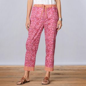 Perfectly comfortable for lounging. yet pretty enough to wear out on the town. Relaxed fit. drawstring pants in a vibrant print. Cotton. Machine wash. Imported. Exclusive. Sizes XS (0 to 2). S (4 to 6). M (8 to 10). L (12 to 14). XL (16 to 18). XXL (20 to 22). 24 inseam.