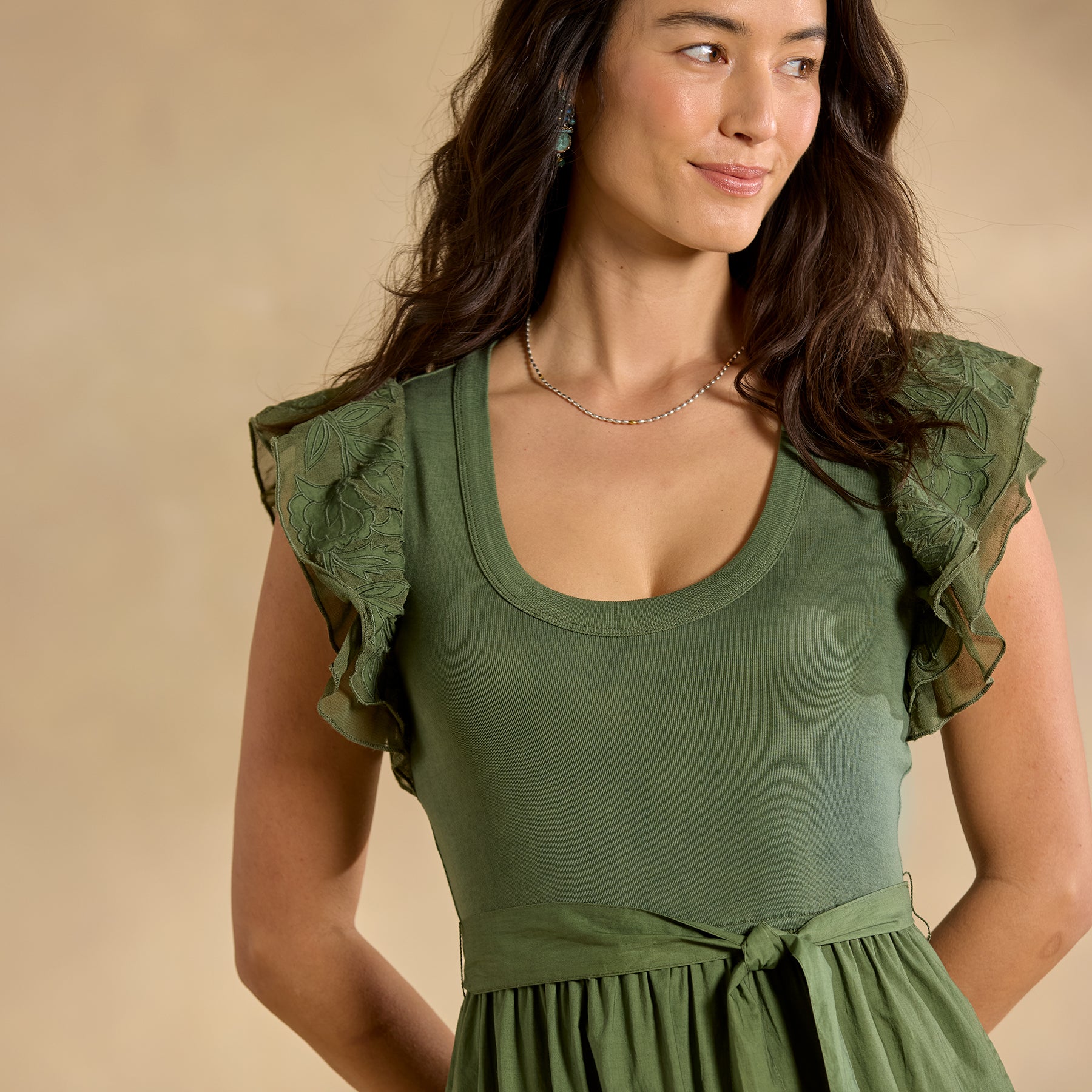 The intricate tonal detail that defines our mixed-media Madera Dress demands a closer look! With a rib-knit bodice. poplin skirt and delicate chiffon cutout details throughout—plus ruffled sleeves. scoop neck. elastic waist and lined skirt. Cotton. Machine wash. Imported. Exclusive. Sizes XXS (00). XS (0–2). S (4–6). M (8–10). L (12–14). XL (16–18). Approx. 46l.