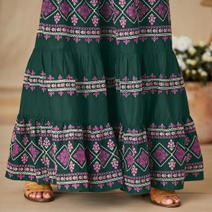 This relaxed skirt is enhanced with geometric embroidery at the waist and at each of the tiers. Side zip. Cotton. Hand wash. Imported. SUNDANCE COLOR. Sizes XS (0-2). S (4-6). M (8-10). L (12-14). XL (20-22). Approx. 41.5L.