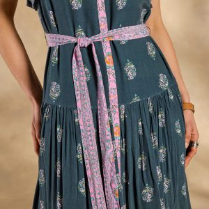 Effortlessly feminine. our Tierra tiered maxi is straight out of a rom-com montage??featuring a demure button front. ruffled neckline and sleeves plus a removable belt. Separate slip. Viscose/cotton. Machine wash. Imported. Exclusive. Sizes XS (0-2). S (4-6). M (8-10). L (12-14). XL (16-18). XXL (20-22). Approx. 53l.